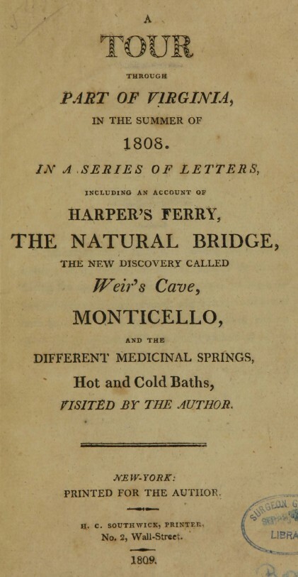 This session will feature: A Tour Through Part of Virginia, In the Summer of 1808 by John Edwards Caldwell